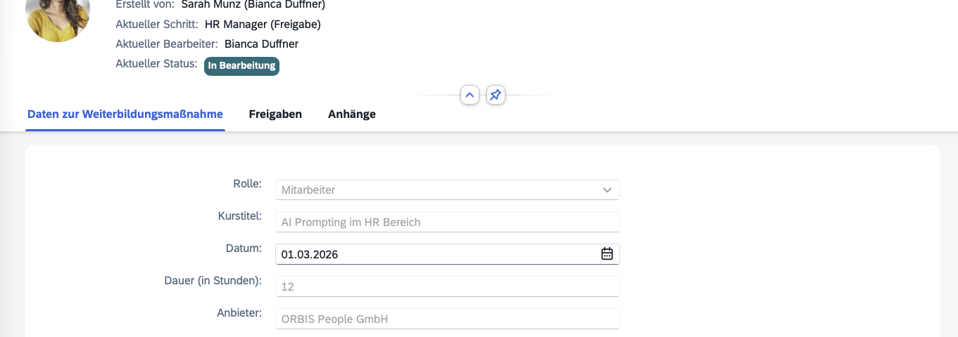 Der Freigabeprozess für den Schulungsantrag ist frei definierbar: