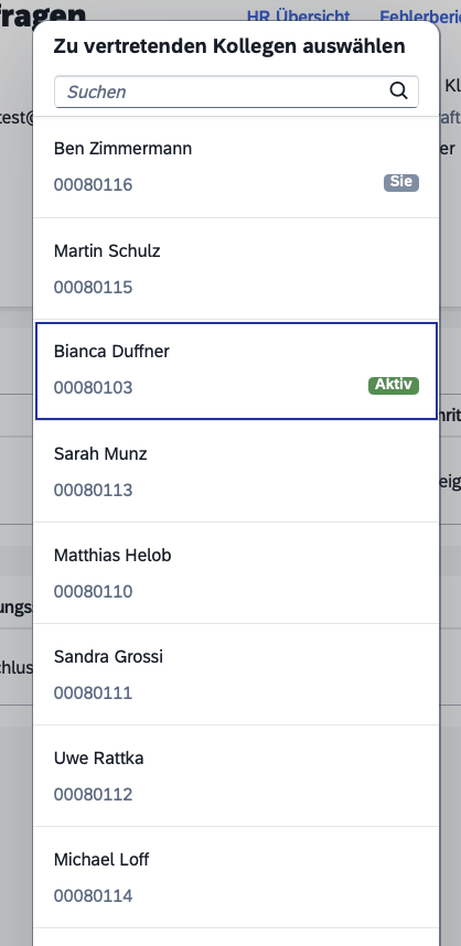 Analog zur Proxy Funktion in SuccessFactors ermöglicht die App, Anträge für andere Mitarbeitende zu stellen. Hier kann entweder explizit eine Vertretung über das Proxy Management oder allgemeine Regeln wie bspw. Führungskraft für alle zugeordneten Mitarbeiter definiert werden.