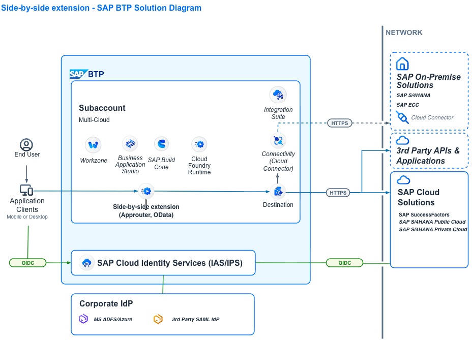 SAP sieht im Zuge der Side-by-side Extensions vor, kundeneigene Anwendungen auf der SAP BTP zu entwickeln. Hierbei wird auf der BTP eine Fiori Anwendung bereitgestellt, die auf die Daten in SuccessFactors per OData Schnittstelle lesend wie schreibend zugreift. Ausführlich beschreiben wir diese Vorgehensweise in diesem Blog Artikel. Nach diesem Prinzip verfährt auch unsere App “Externe Trainings verwalten”.