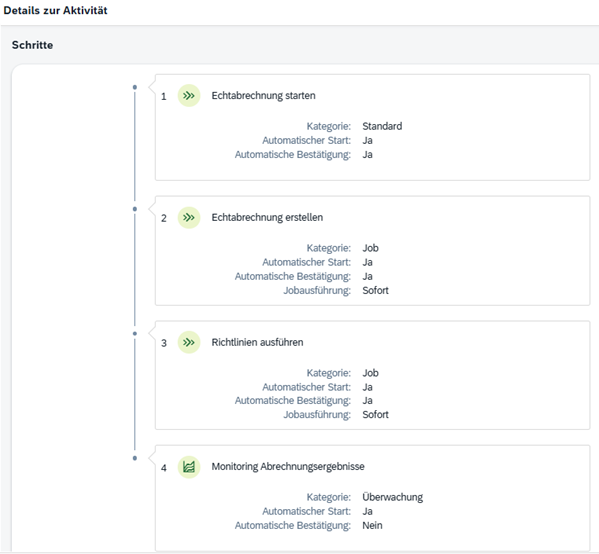 Die einzelnen Schritte einer Abrechnungsaktivität greifen dabei ineinander und sorgen dafür, dass jeder Schritt erst dann ausgeführt wird, wenn die vorherigen Voraussetzungen erfüllt sind: