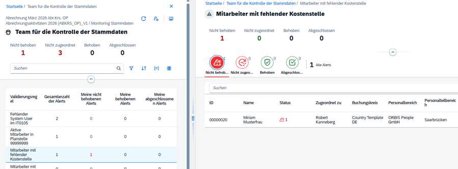 Die Validierungen berücksichtigen dabei stets den aktuellen Stand der Stammdaten und ermöglichen eine frühzeitige Identifikation potenzieller Unstimmigkeiten.